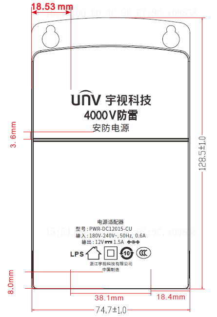 UNV DC12V/1.5A壁挂电源适配器100个