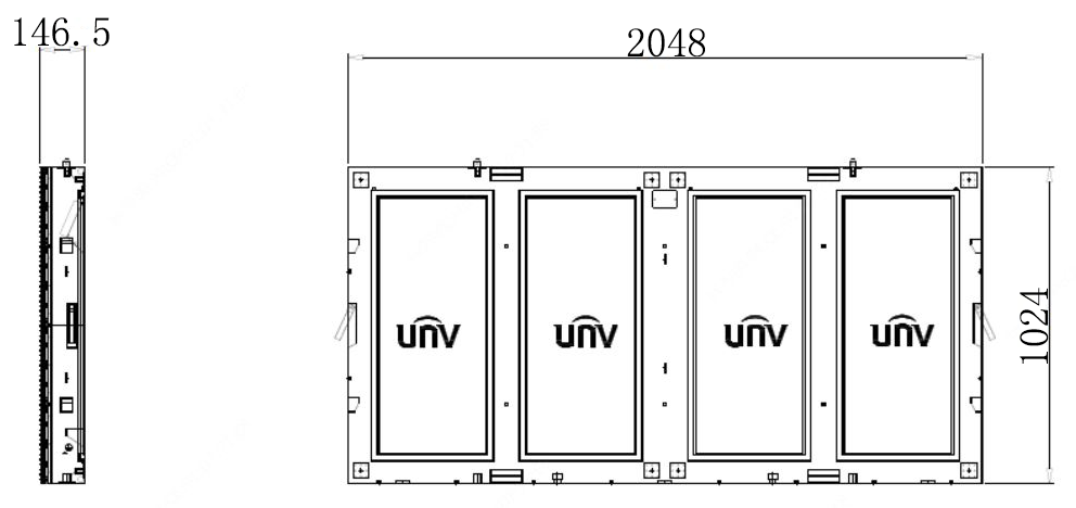 对比度为3000:1,箱体平整度系数<1mm