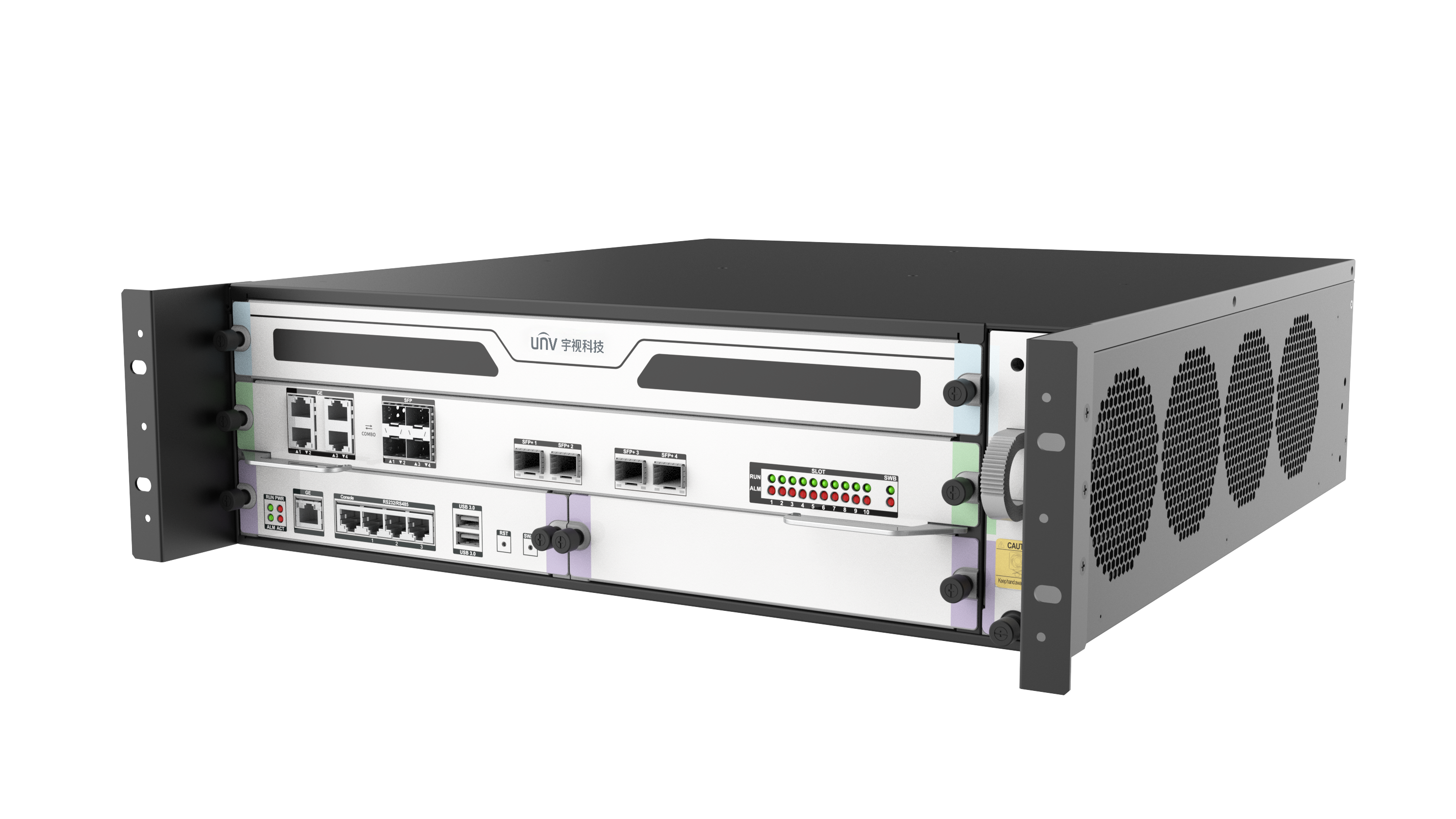 插卡式设计,可根据业务灵活配置,正反双面插槽,密度更高,能耗更低