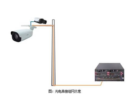 该机光口款同时具备SFP和RJ45接口,支持宇视独有的光电1+1串接组网:SFP口通过光纤接入后端交换机,空余的RJ45口可以通过网线再接入一路IPC,两个摄像机的图像都通过光纤传送到后端。光电1+1串接非常适用于路口、周界等多个摄像机就近背靠背监控的场景,大大节省了远距离光纤布线成本,而且在项目扩容时能更方便的接入就近的新增点位。